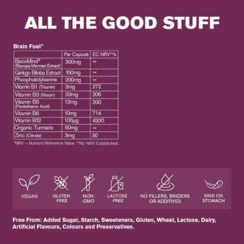 Melhore a sua memória, concentração e desempenho cognitivo com Dr. Vegan Fuel para o Cérebro, um suplemento premiado que combina potentes botânicos e vitaminas para clareza mental máxima.