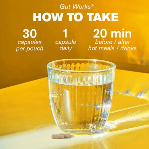 O Gut Works® alivia o inchaço e os sintomas de IBS, enquanto aumenta a energia, a clareza mental e a qualidade do sono. Com cápsulas de libertação retardada para absorção ideal, é a melhor escolha para a saúde intestinal e o bem-estar.