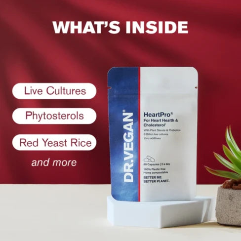 Apoie a saúde do coração e controle o colesterol com o DR VEGAN HeartPro®, uma fórmula avançada que combina esteróis vegetais, probióticos e nutrientes essenciais. O HeartPro® fornece suporte cardiovascular, promove a saúde do coração e apoia os níveis de energia com a Vitamina B12.