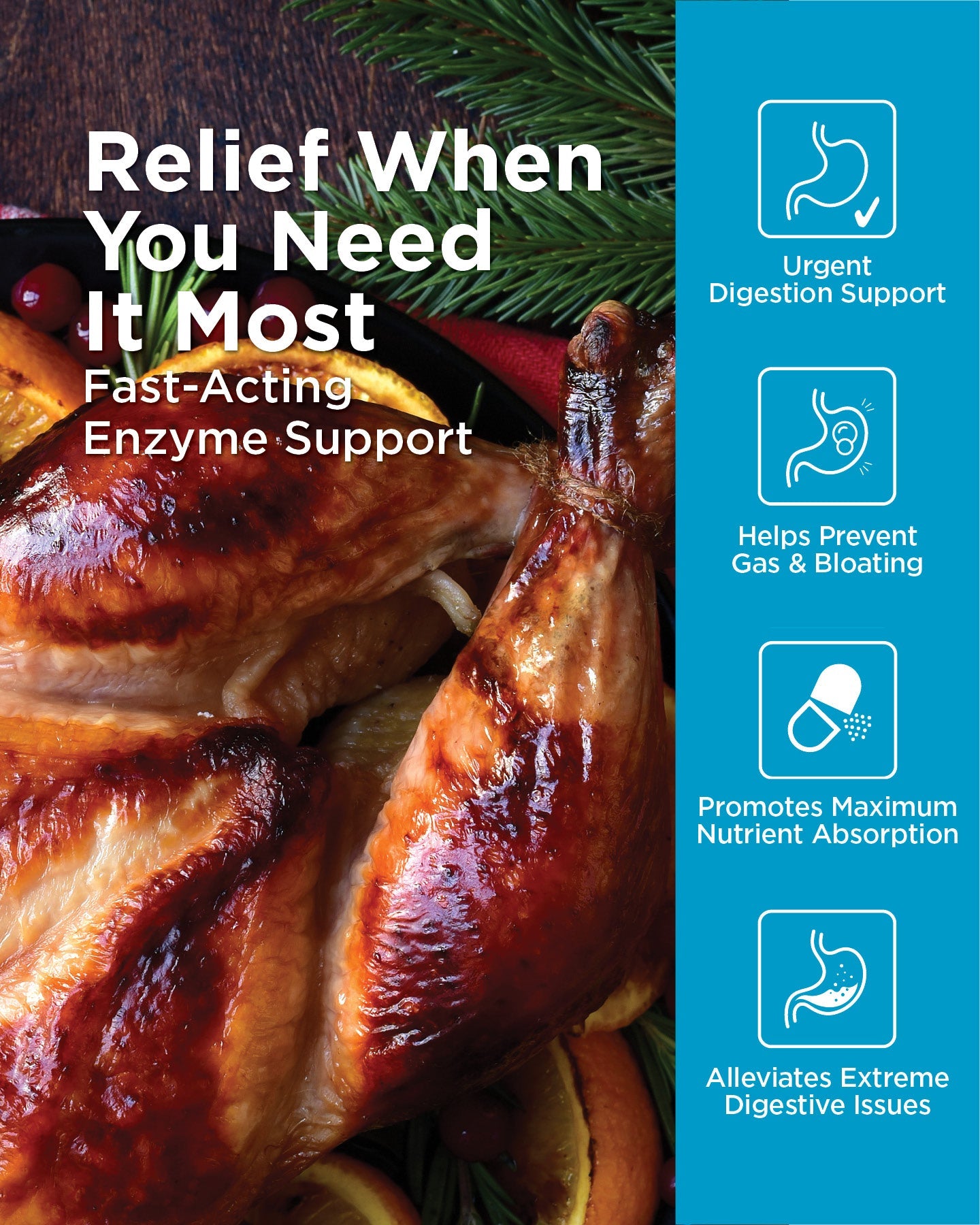 Urgent Care Enzymes é uma fórmula enzimática de alta potência desenvolvida para aliviar gases, inchaço, intolerância à lactose e desconfortos digestivos intensos, como cólicas e diarreia. Esta combinação completa de enzimas foi criada para situações mais exigentes, ajudando o organismo a decompor gorduras, hidratos de carbono, proteínas, açúcares e fibras de forma eficiente. A produção natural de enzimas do corpo pode diminuir devido ao stress, cafeína, álcool, doença, gravidez ou envelhecimento — este suplemento ajuda a restaurar esse equilíbrio. Com ação direcionada para digestões difíceis e refeições ricas em gordura, proteína ou lactose, Urgent Care Enzymes promove absorção máxima de nutrientes e alívio rápido dos sintomas. Vegan, Sem Glúten, Não‑OGM, Sem conservantes artificiais.
